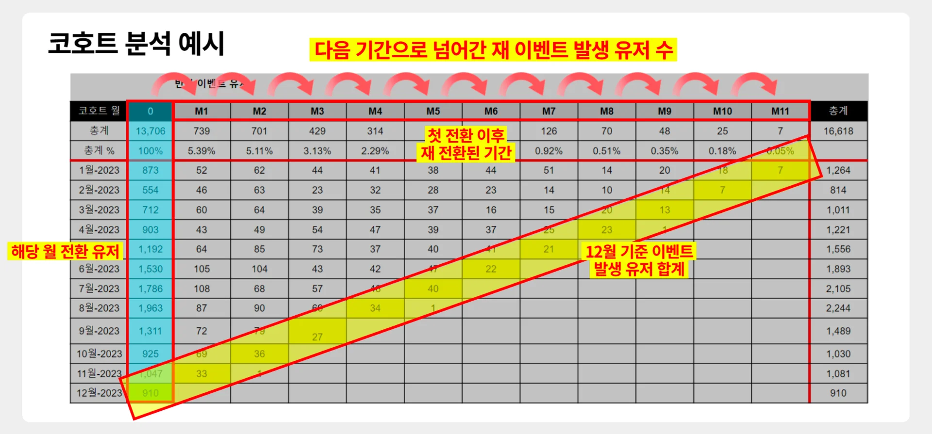 전환된 유저가 그 다음 달에도 구매하는지, 매월 반복적으로 방문하고 구매하는지를 추적하며 재방문율, 재구매율을 측정해야 하죠.