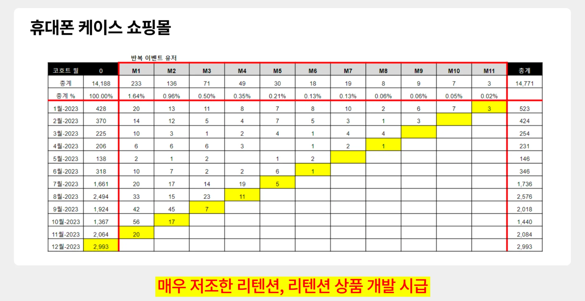 이 경우에도 빨리 리텐션 상품을 개발할 필요성이 있습니다.